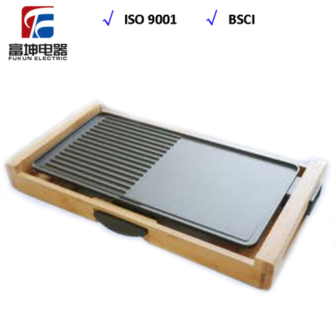 Ayrılabilir Elektrikli Sıcak Plaka Doğal Bambu Taban BARBEKÜ Izgara